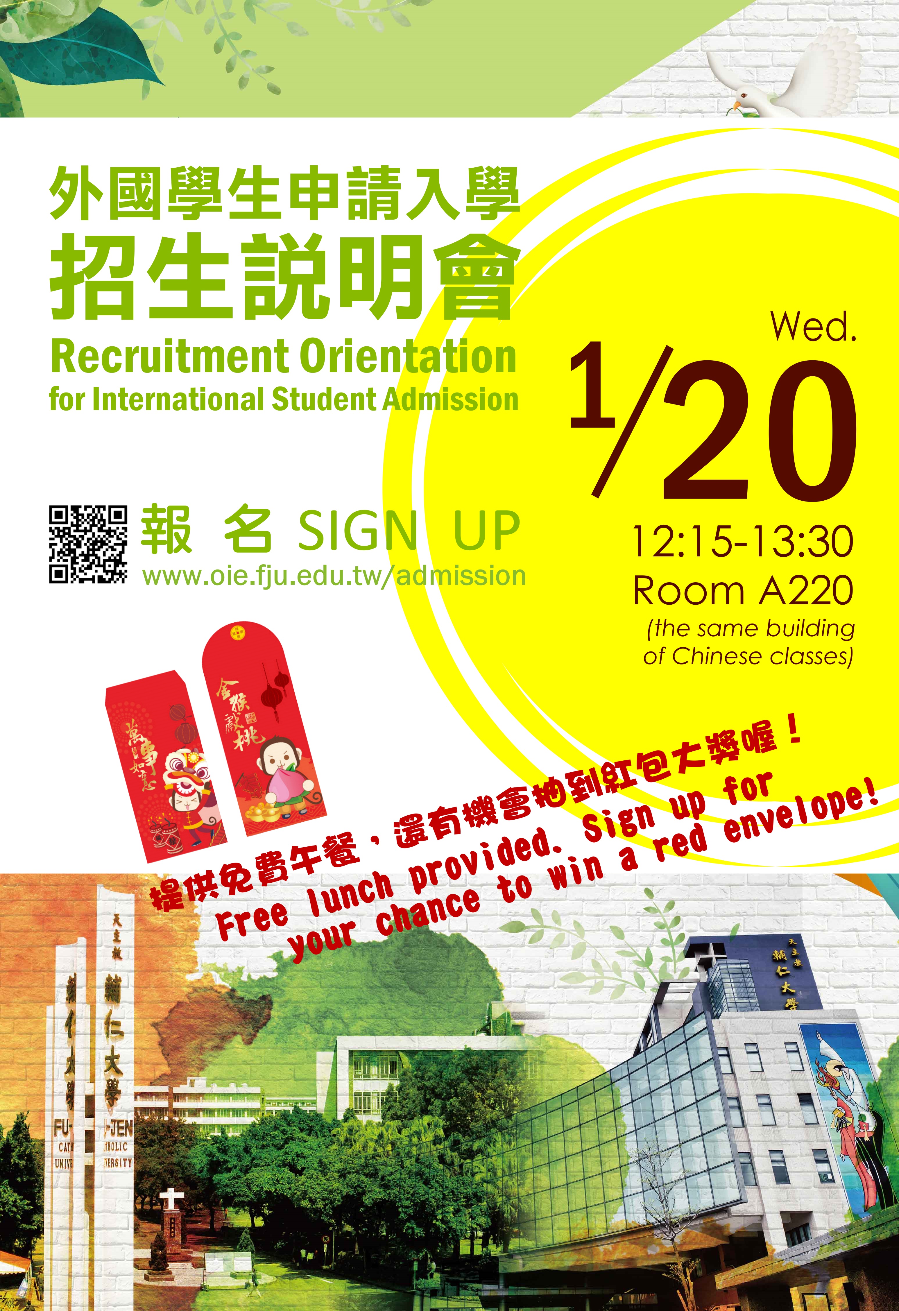 申請資訊:http://www.oie.fju.edu.tw/admission/